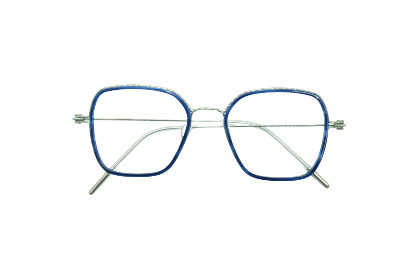 Le Modèle Four 03 de TAYLER revisite l’élégance vintage avec une monture carrée aux lignes douces et harmonieuses. Son cerclage en acétate bleu translucide, associé à une structure en titane argenté, lui confère un style à la fois distinctif et intemporel.